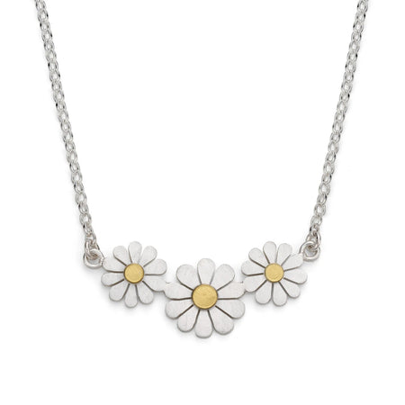 A statement sunflower necklace or a simple pendant with a single flower; this handcrafted collection makes for the most unique neckline. Handmade in silver and 18ct gold.